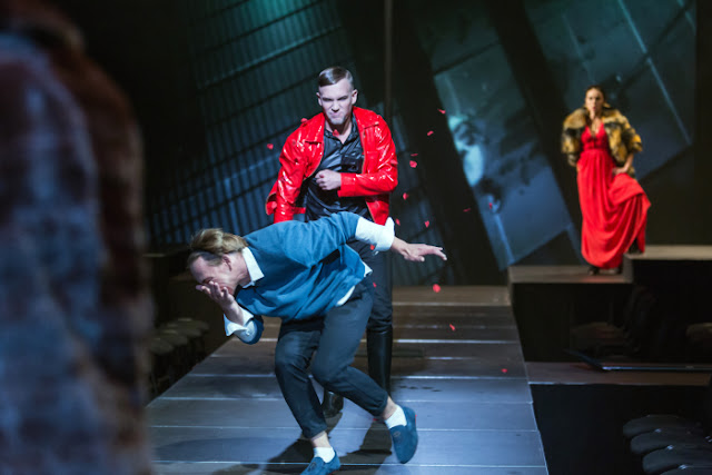 Seevastu tundsin palju vingemat särtsu Elina Reinoldi ja Margo Tederi duetis - erinevate perede peadena. Temperament ja huvitavad rollijoonised, kuidas maskiballil Elina üllatab taktitundega, kuigi ootad, et ta läheb raevu nagu tema rusikamehest sugulane, aga ei. Elina on ilmselt üks meie praeguse hetke parimaid naisnäitlejaid üldse. Tema hääl on kaubamärk omaette - nii eriline, oma madaluse ja kärinaga - kui ta ise seda nii tahab. Ja rollides on see ju üheks põhi-tööriistaks, mida ta siin ka mõnuga kasutab. Rääkimata liikumisest ja kangest seljast ja ootamatutest vägivallapuhangutest, mis tema karakteri nii elavaks ja elusaks teevad. Ja Margo mõtlikud välgatused muu välise mängu vahele, no lausa meisterlik! Armastus ja viha on ju mõlemad nii kirglikud tunded ja seda teist neist pritsisid Margo ning Elina Vaba Lava atmosfääri kordamööda ja korraga. Ago Soots on siin küll peamiselt jutustajaks, ent sekkub ka tegevuse kulgu vend Lorenzona. Jutustaja-rollid on tihti tänamatud, sest karakterit teha ju teistega võrdselt ei saa, aga ometi on see pühamees perekondade vahel kaalukausse õhushoidvaks kaalutalaks, kes ise ei kontrolli nende kausside vajumist ja tõusu, aga ei saa ka sealt vahelt minema. Ta tahab ju head. Agost õhkub seda "headust", mida ta tegelase läbi lavale kannab ja kogu valemisse juurde annab.
